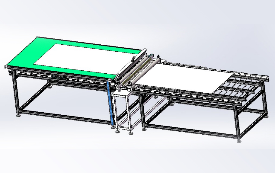 本生產線依據(jù)用戶需求,進行“量身”設計,由層壓前鋪設傳輸線;通過不同機構的傳輸、轉運、變向、定位、旋轉/釋放實現(xiàn)組件封裝過程的流水化操作,可提高單位組件生產效率。
